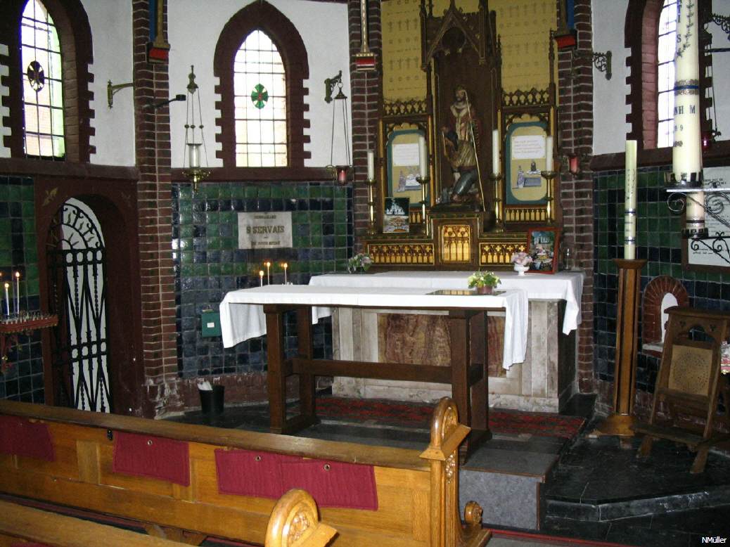 Sie sind hier: Startseite » Kapellen Limburg (NL) » Midden Limburg » Leudal Innenansicht der Kapelle Chor Altarraum Pilgerkerzen Blumenschmuck an st Servaas