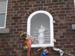 Am Bauernhaus Fell - Die Madonna wird auf älter als 100 Jahre geschätzt. Sie steht auf einer Welzkugel mit Mondsichel aus III216